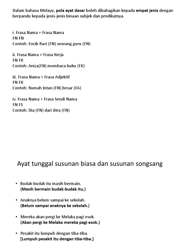 Contoh Contoh Frasa Ayat Tadika
